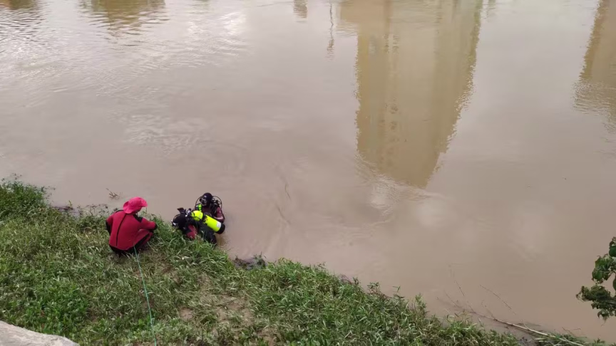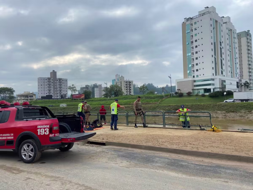 Corpo de Bombeiros localiza carro que caiu no rio Itajaí-Mirim em Brusque