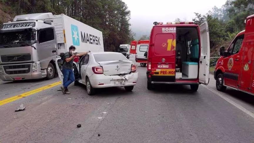 Criança fica gravemente ferida em acidente entre nove veículos na BR-470, em Ibirama