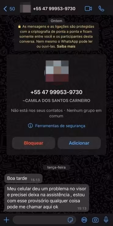 Camila descobriu o golpe após ter acesso ao celular de Carine e receber uma mensagem do número se passando por ela. Outros familiares também chegaram a questionar se Camila havia trocado de número.