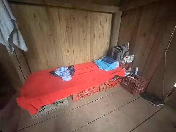 O outro alojamento, uma pequena casa em condições precárias, localizada em área rural de difícil acesso, estava superlotada, com dois trabalhadores dormindo no espaço destinado ao preparo de alimentos.