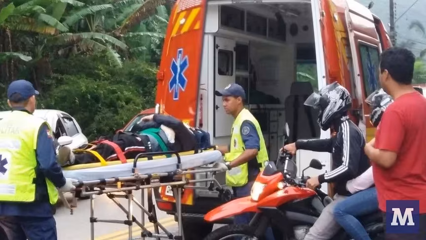 Já em frente à Sociedade Beneficente, um automóvel Peugeot e uma Honda CG, ambos com placas de Brusque, colidiram. A passageira da motocicleta foi conduzida ao Hospital Azambuja, e o condutor da moto e do automóvel nada sofreram.