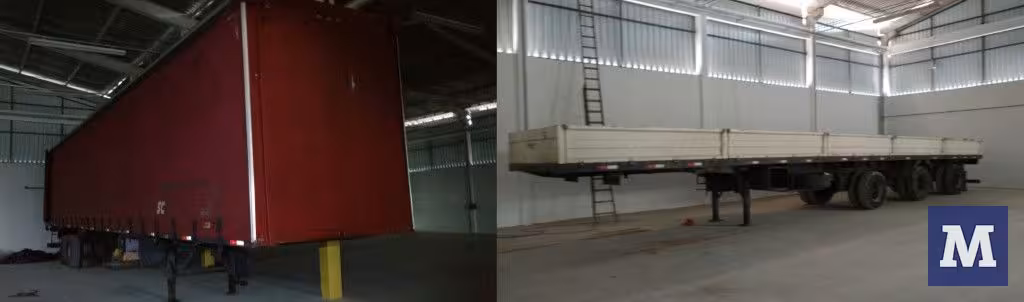Dois semirreboques e parte de carga roubada são encontrados em galpão, no Bateas