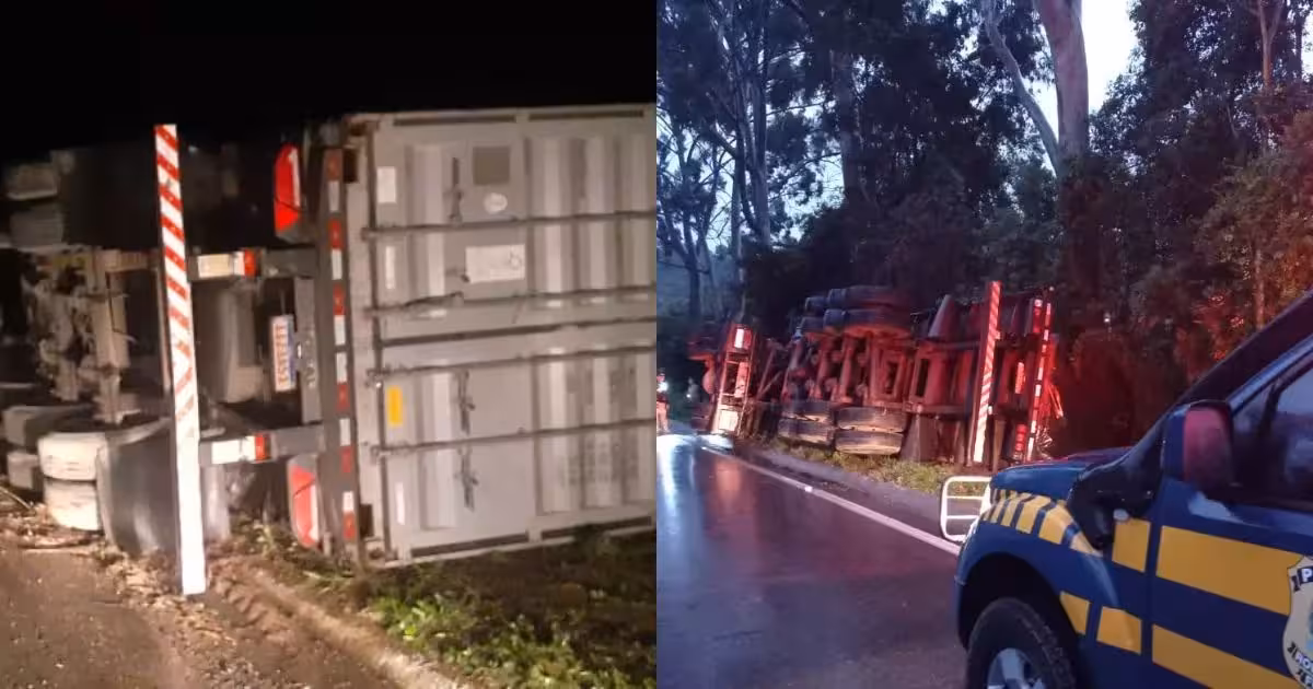 O primeiro caminhão tombou por volta das 3h e o segundo por volta das 6h. Os dois veículos eram da marca Scania. O trânsito não ficou comprometido, por conta dos veículos terem tombados fora da pista.