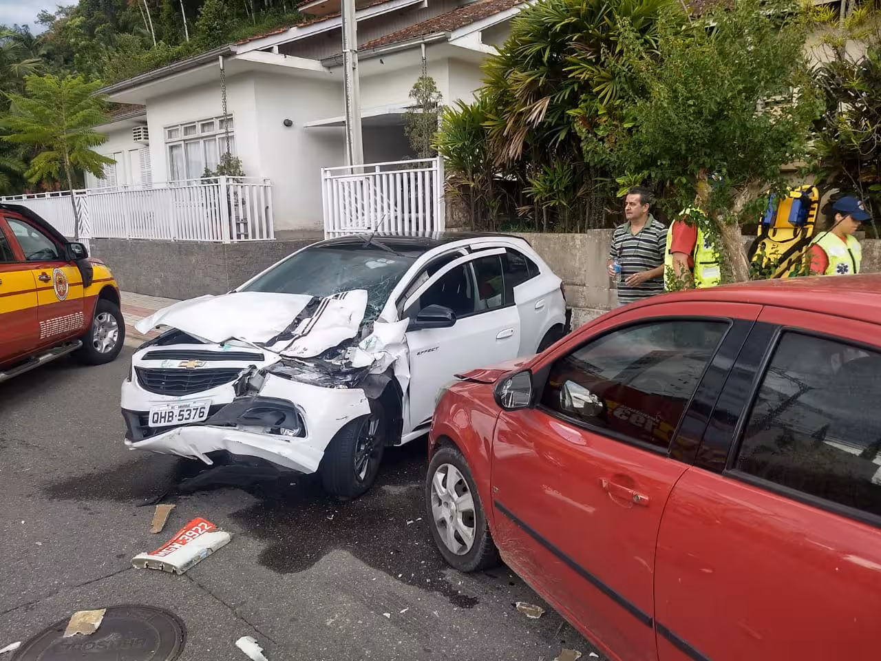 A mulher que dirigia o Onix foi atendida pela equipe do Samu e então levada ao Hospital Azambuja para receber socorros. Ela recebeu alta horas depois.