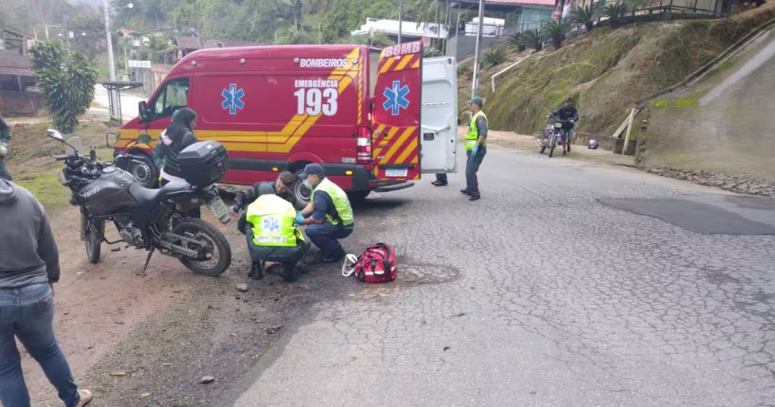 Dois homens ficam feridos após colisão entre duas motos no Cedro Alto, em Brusque