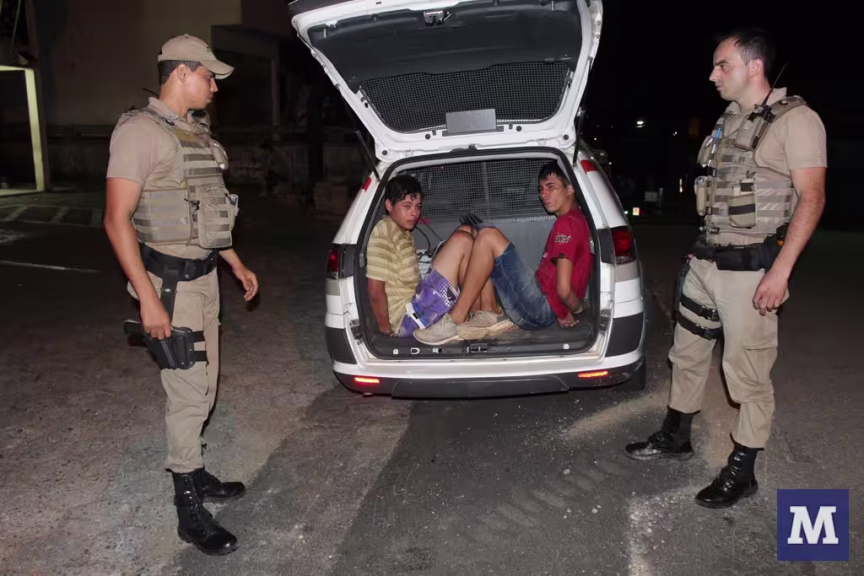 Dois jovens foram presos pela Polícia Militar no começo da noite desta sexta-feira, 12, por volta das 19h20, cerca de uma hora após terem roubado o Mercado Barni, na rua Alberto Müller, bairro Limeira.