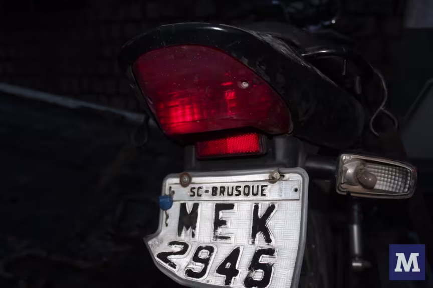 Além da motocicleta CG 125 Fan, de cor preta e placa de Brusque, que tinha sido furtada por Bertoli um pouco mais cedo, próximo ao Banco do Brasil do Centro, a PM localizou duas pistolas de brinquedo (simulacro) e R$ 438 em dinheiro, sendo que R$ 270 pertenciam ao cliente e o restante ao mercado. A motocicleta teve a placa adulterada com fita isolante e foi dobrada para dificultar a identificação.