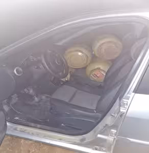 Dentro do carro foram encontrados 12 botijões de gás, que haviam sido furtados do mercado, e outros 11 botijões que estavam espalhados em meio a estrada.