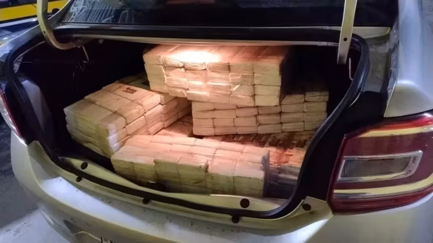 A droga estava no porta-malas e no banco traseiro de um automóvel pertencente a uma locadora.