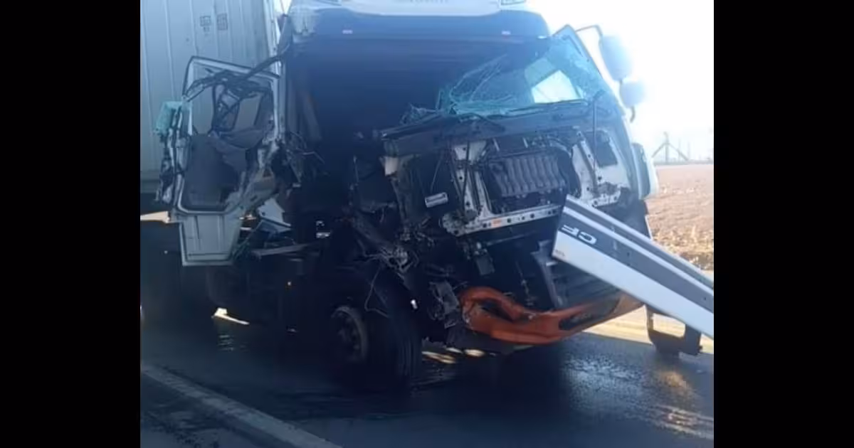 De acordo com informações, houve uma colisão traseira entre as carretas. No entanto, os motoristas não ficam feridos.