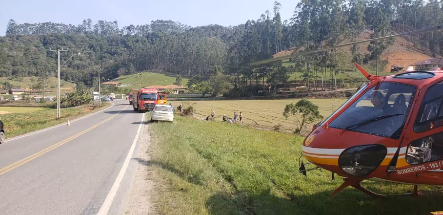 O helicóptero Arcanjo de Blumenau foi acionado pois uma menina de 12 anos ficou gravemente ferida. Ela apresentava um traumatismo cranioencefálico grave e precisou ser transportada para o Hospital Santa Isabel.