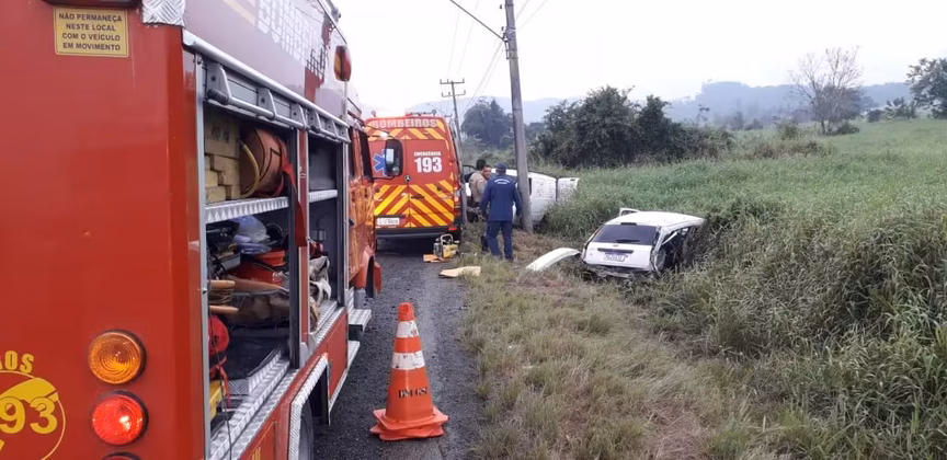 O outro veículo envolvido no acidente é um Doblô, conduzido por um homem de 31 anos. Ele estava com dor na perna direita e ferimentos no rosto e recebeu curativos. Ambos foram conduzidos ao Hospital de Gaspar.