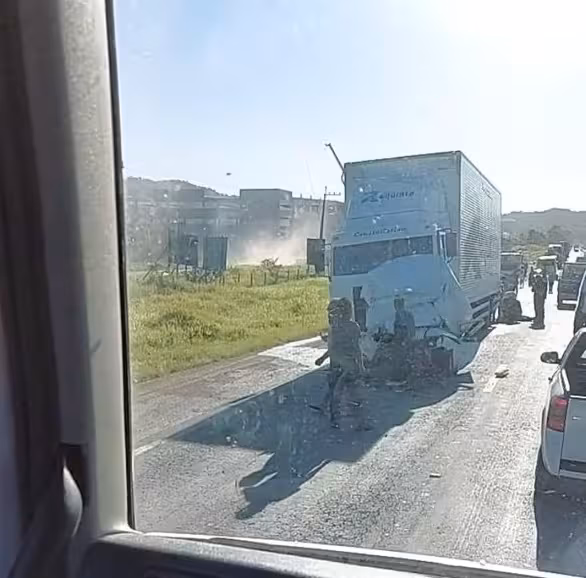 Duas pessoas morrem em acidente entre carro, dois caminhões e moto na BR-470