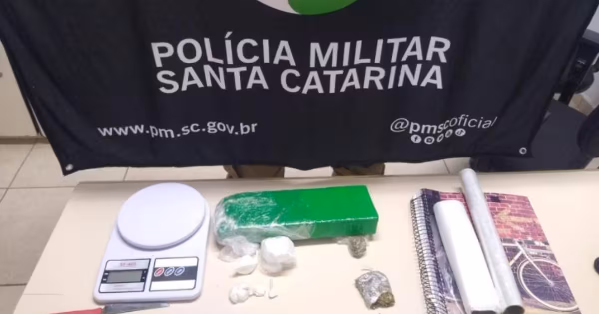 A Polícia Militar foi acionada após uma mochila com drogas ser encontrada. Os agentes localizaram um tijolo de maconha, uma sacola com uma porção grande e outra menor de cocaína, outra porção de maconha, uma balança de precisão, uma faca e um caderno para anotações, itens utilizados como instrumentos para o tráfico de drogas.
