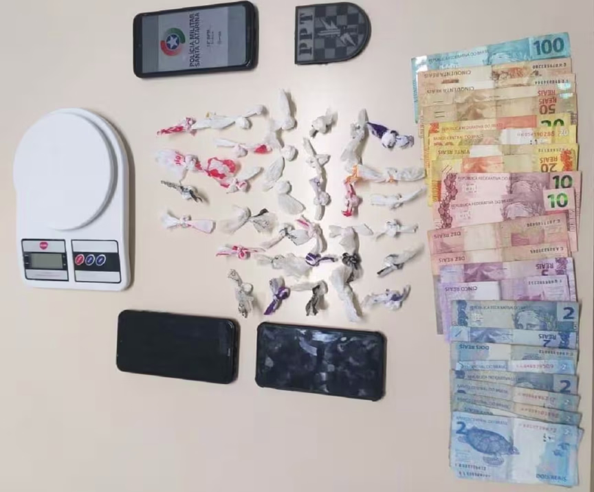 Os policiais foram até a lanchonete, a qual o endereço não foi informado, e encontraram em um esconderijo mais 26 buchas de cocaína, uma balança de precisão e R$ 459.