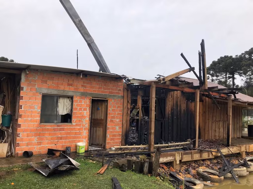 Um estabelecimento em Campo Alegre foi atingido por um incêndio neste domingo, 7, em Campo Alegre, no Norte de Santa Catarina. O local foi parcialmente destruído pelas chamas e um cachorro foi encontrado preso no banheiro.