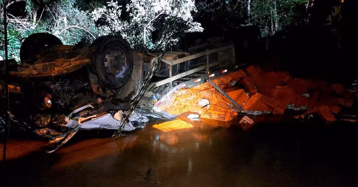 Uma família morreu após um caminhão capotar e cair em um riacho na SC-480, em São Domingos, no Oeste catarinense, na madrugada desta quinta-feira, 22.