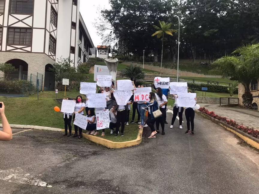 Portando cartazes, faixas e entoando palavras de ordem, eles reivindicam a volta das visitas e a possibilidade de tornar a entregar roupas, alimentos e produtos de higiene e limpeza aos detentos.
