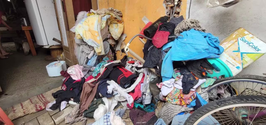 Catherine, que trabalha como esteticista no Centro da cidade, conta que perdeu materiais de estudo e também alguns equipamentos de trabalho. “Meu quarto foi o primeiro a ser atingido pela água por causa da inclinação da casa, então começa lá e depois vai para o resto dos cômodos. A maioria das coisas que estavam próximas do chão foram perdidas”, diz.