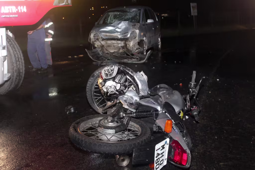 Um grave acidente foi registrado por volta das 5h desta sexta-feira, 21, na rua Itajaí, bairro Limoeiro e envolveu uma motocicleta Titan de cor prata e uma Meriva de cor prata, ambos com placas de Brusque.