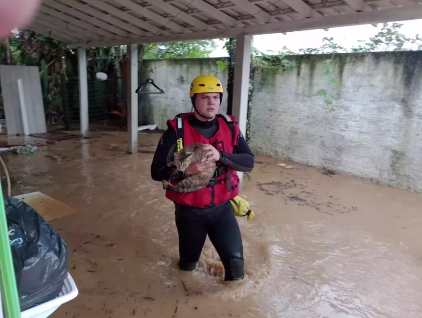 Desde o início das chuvas, diversos animais foram resgatados pelo Corpo de Bombeiros de Santa Catarina. Segundo as informações preliminares, cerca de 17 ocorrências de resgate foram registradas, e entre elas, cerca de 23 animais foram salvos.