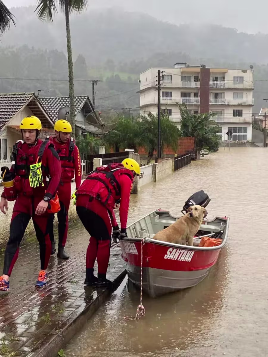 No bairro Barragem, em Rio do Sul, um cachorro foi resgatado pela Força-Tarefa do 15º Batalhão de Bombeiros Militar, durante a manhã deste domingo, 8. “O CBMSC reforça o pedido para que as pessoas que precisarem sair de suas casas, não abandonem seus animais de estimação”, escreveu o órgão.