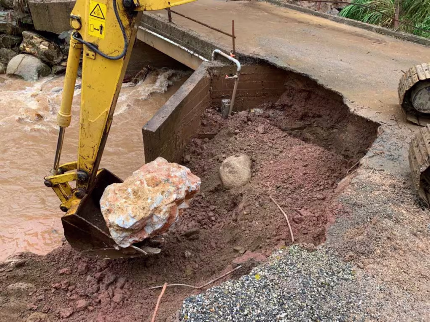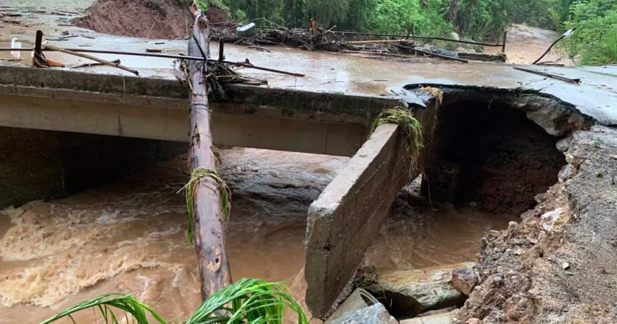 “Uma ponte teve as cabeceiras ‘comidas’ e estamos com maquinário no local. Várias famílias ilhadas”. A prefeitura estima que 80 famílias estão sem acesso devido aos danos nas pontes.