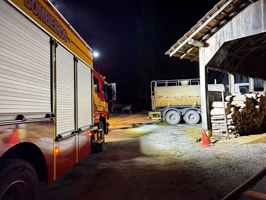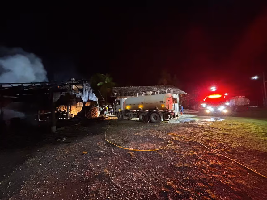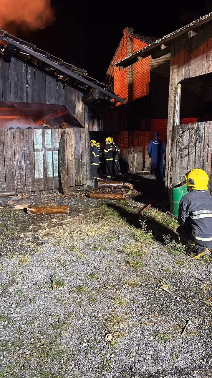 Um incêndio destruiu um galpão de madeira em Botuverá na noite deste sábado, 11. O combate às chamas exigiu o uso de 29 mil litros de água.