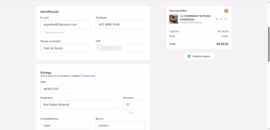 Reportagem simulou pedidos em site de venda de sushis