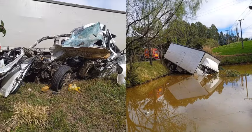 De acordo com o relatório do Corpo de Bombeiros, o acidente tratou-se de uma colisão frontal. Após a batida, o caminhão entrou parcialmente em um açude, às margens da rodovia. Um homem e uma mulher que estavam no caminhão tiveram ferimentos leves. Eles foram levados para o Hospital Universitário Santa Terezinha, em Joaçaba.