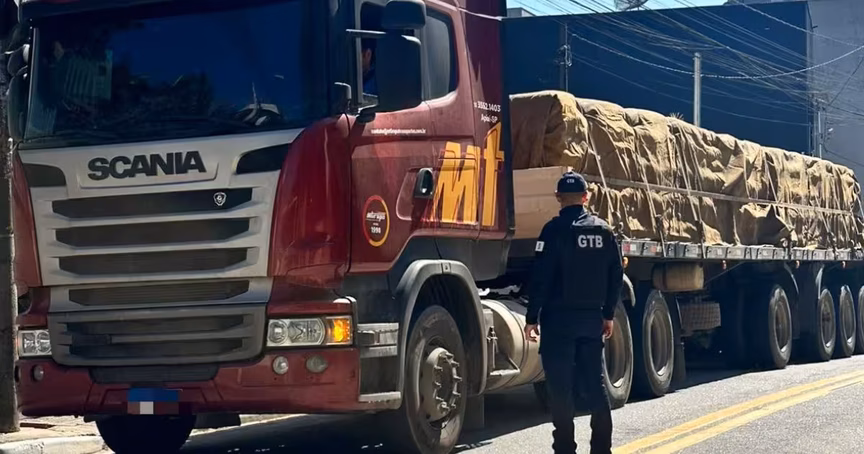A Guarda de Trânsito de Brusque (GTB) flagrou, nesta terça-feira, 13, uma carreta Scania vermelha com mais de 30 toneladas de carga transitando em local proibido na rua Gustavo Halfpap.