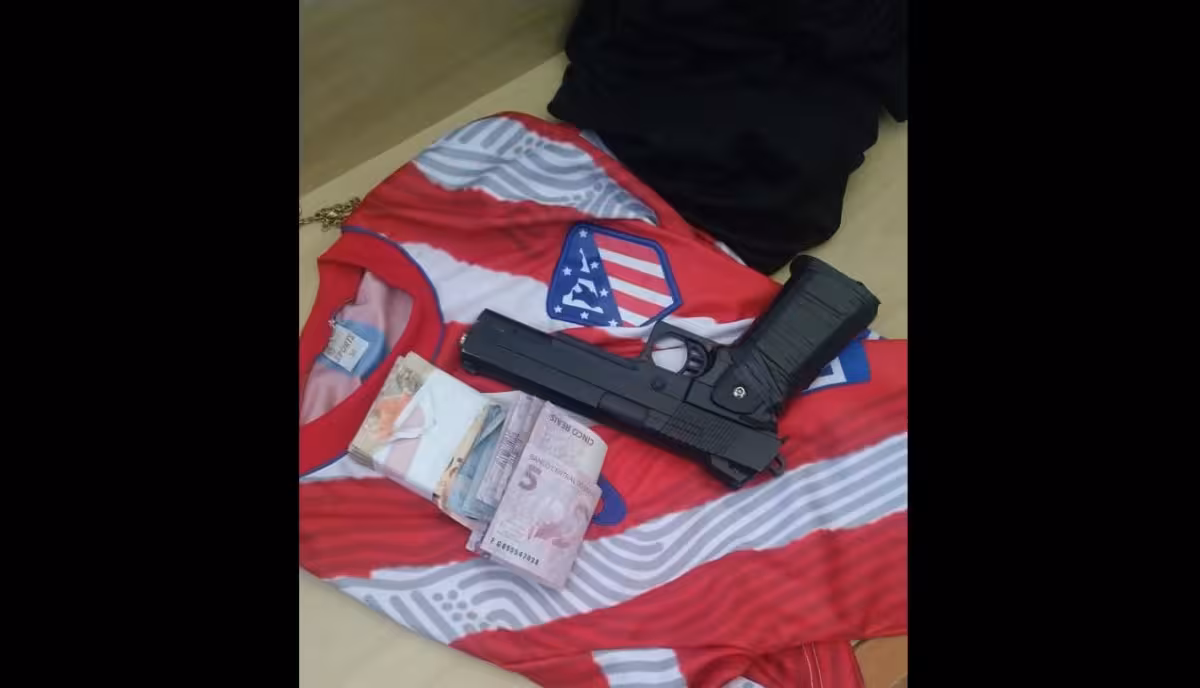 No seu quarto estava a arma do crime, que na verdade era um simulacro, e as mesmas roupas utilizadas no assalto. Os policiais localizaram ainda o dinheiro roubado.