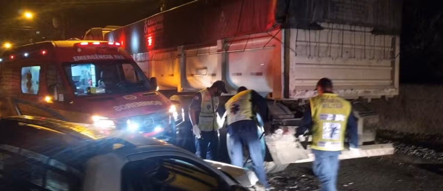 De acordo com os bombeiros, o carro Montana de cor prata colidiu com a traseira da carreta, que estava estacionada na beira da via de rolamento. O motorista do veículo, um homem de 35 anos, estava dentro do carro.