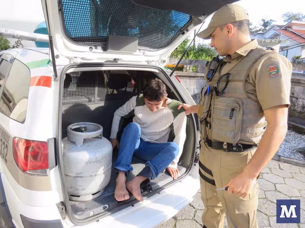 Cerca de 200 metros mais a frente da casa, os policiais localizaram Souza, que já estava em posse de um botijão de gás e mais uma sacola cheia de objetos.