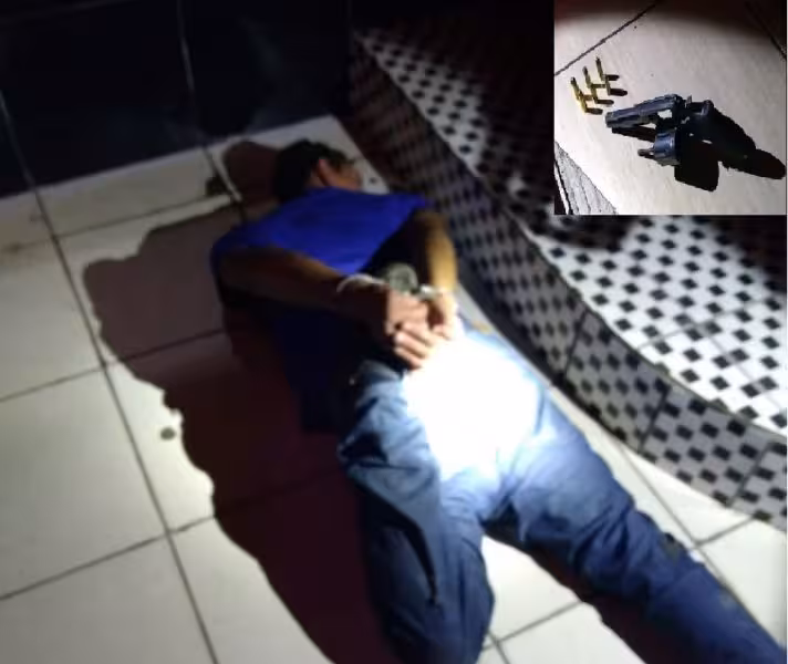 Antes da abordagem, o homem correu para um quarto e jogou o revólver em cima do guarda-roupas para tentar se livrar dele.