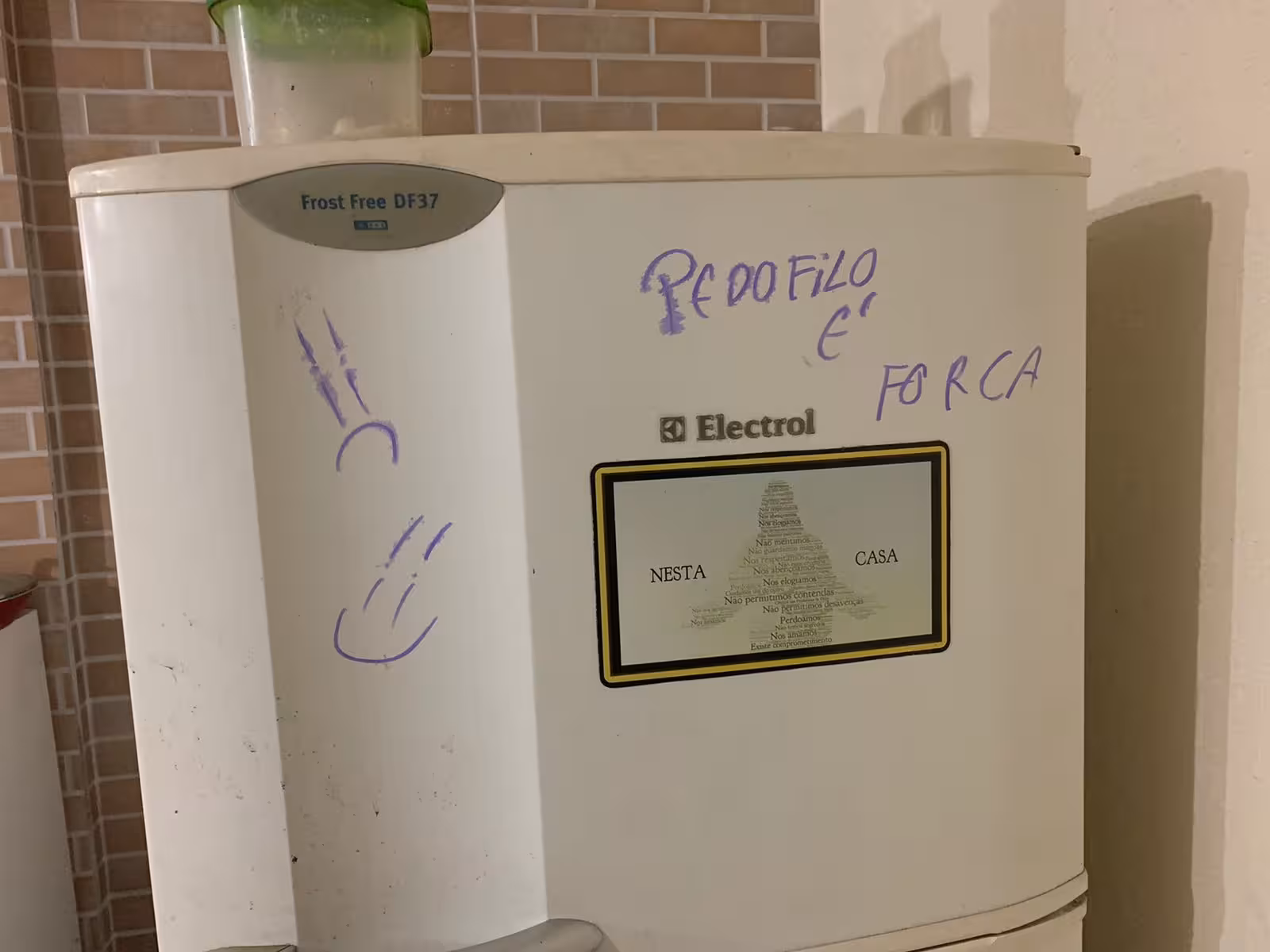 "Pedófilo é forca" estava escrito atrás da geladeira da vítima