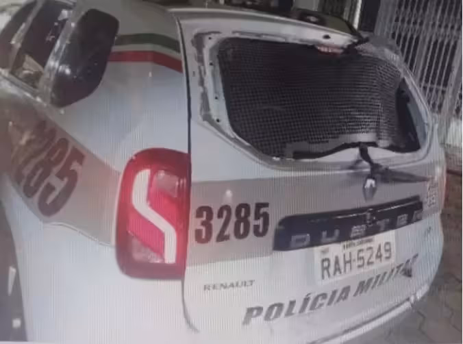 Viatura da PM foi danificada