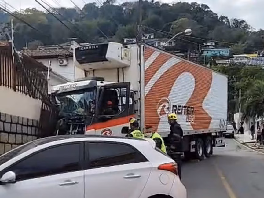 O acidente ocorreu na rua Monsenhor Topp, próximo à avenida Mauro Ramos. O trânsito foi interrompido para remoção do caminhão.