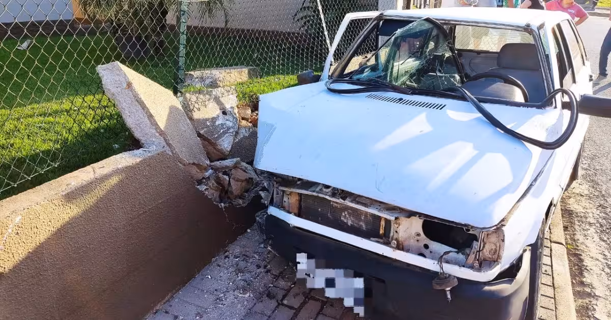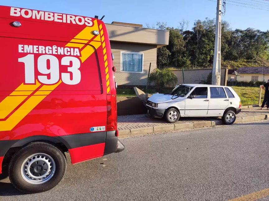 Um carro com contra um muro e acionou os bombeiros em Guabiruba neste sábado, 27. O acidente foi na rua Alberto Reichert, no Aymoré, por volta das 16h.