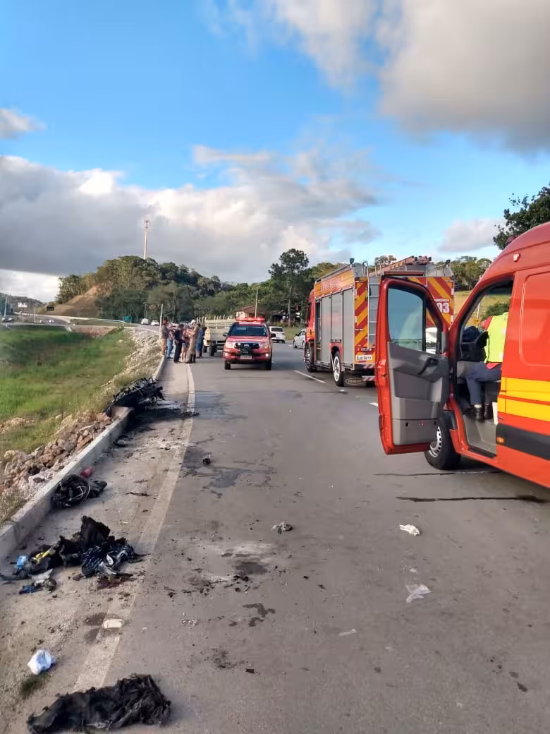 Segundo o Corpo de Bombeiros, a vítima conduzia uma motocicleta, que pegou fogo. Ele sofreu queimaduras de terceiro grau e fratura exposta na perna direita. A vítima estava consciente e foi atendida pelos bombeiros e pelo Samu.
