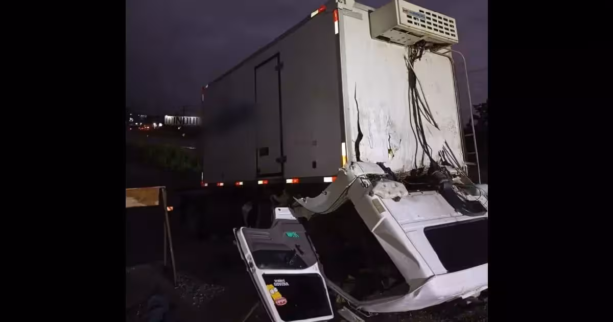O acidente envolveu um caminhão-baú e um homem que estava andando próximo à rodovia. O condutor do veículo atropelou o pedestre, de 22 anos, e se chocou com uma estrutura da construção da ponte nova que passa sobre o rio Muldi. Com o impacto, a cabine do caminhão se desprendeu do chassi.