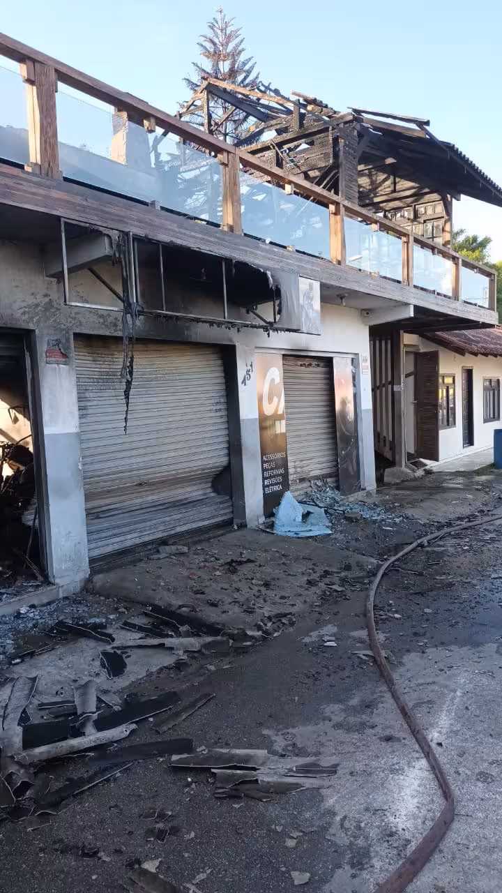 O incêndio também causou diversos danos materiais. O imóvel tinha dois pavimentos, onde um era residência e outro uma oficina mecânica. Cerca de 20 motos foram destruídas, além de várias peças que estavam no local.