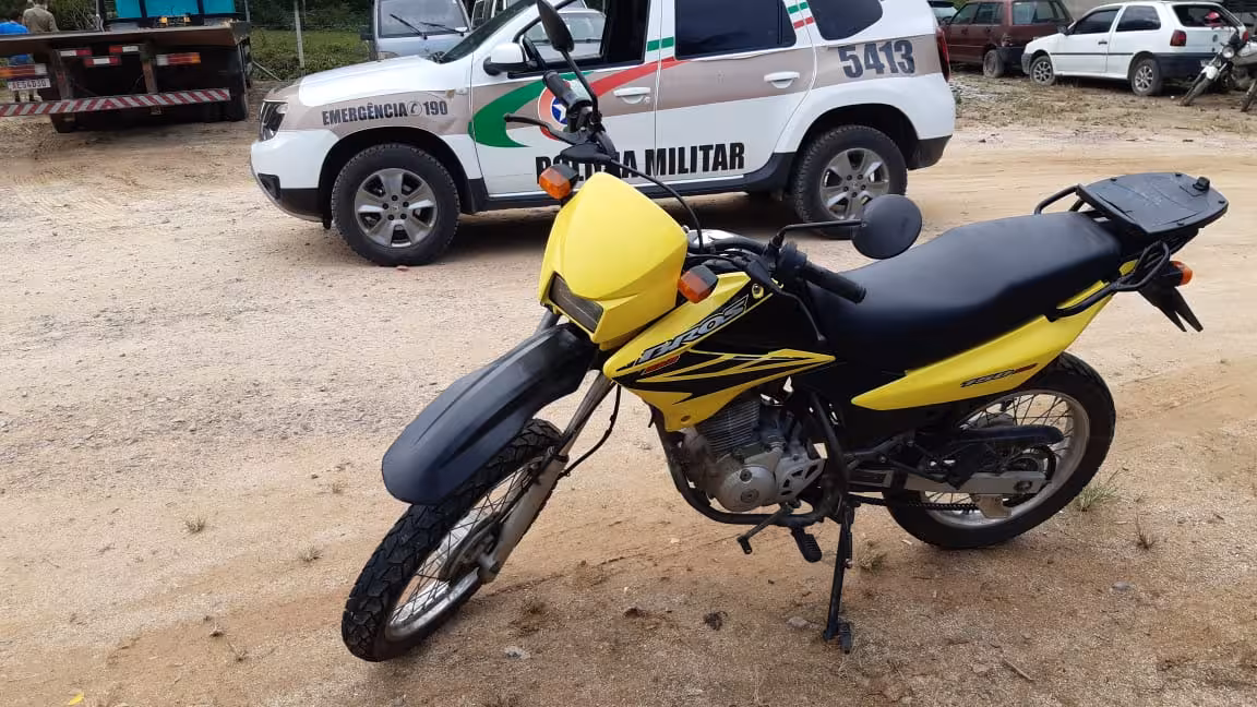 A moto foi recuperada e encaminhada ao pátio da Polícia Militar.