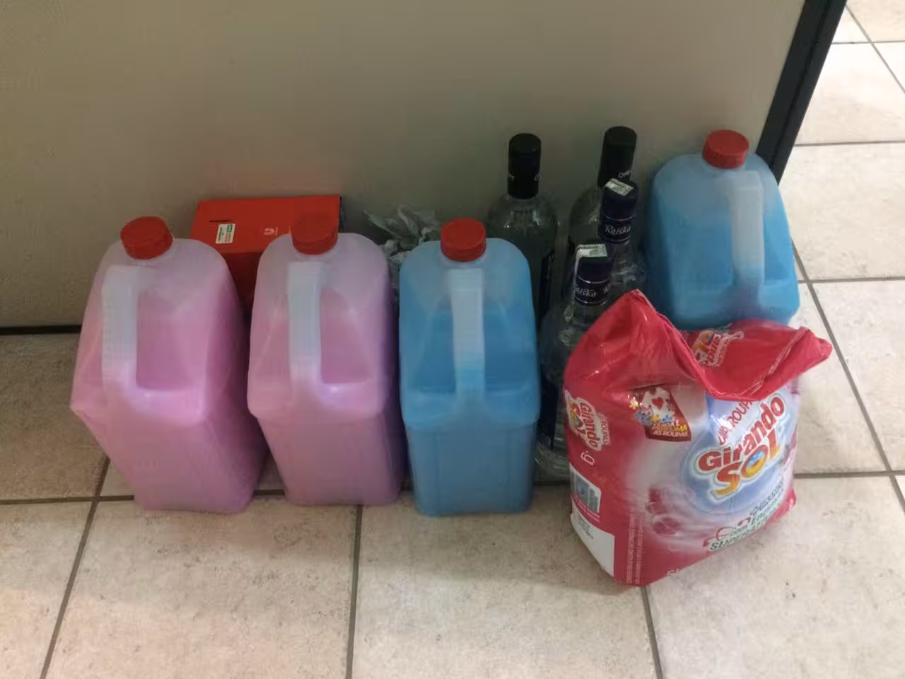 Ele furtou do estabelecimento três galões de amaciante, uma caixa e um pacote de sabão em pó, três garrafas de vodca e um fardo de Smirnoff Ice, do qual já havia bebido as seis garrafas.