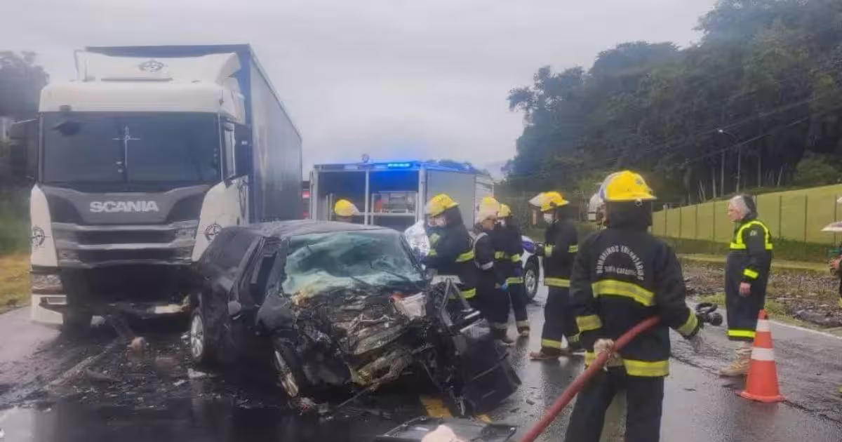 De acordo com informações do Corpo de Bombeiros Voluntários de Indaial, que atenderam a ocorrência, a vítima fatal conduzia um carro e colidiu contra uma carreta. Apesar da gravidade do acidente, o motorista do caminhão não se feriu e recusou atendimento.