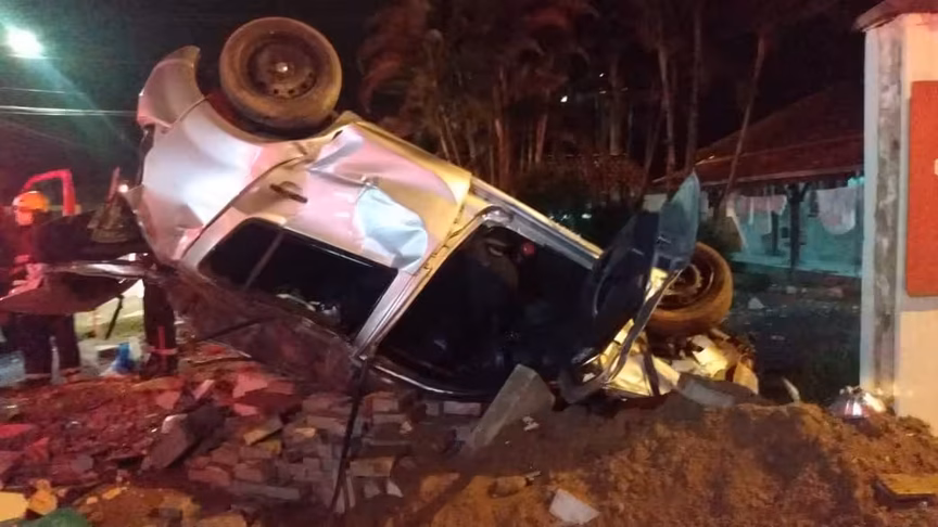 Um homem de 40 anos morreu após colidir o carro no meio-fio, bater no muro e capotar no bairro Itoupava Central, em Blumenau, na noite desta quinta-feira, 28.