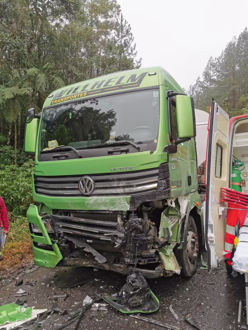 Um homem morreu e outras três pessoas ficaram feridas após uma colisão frontal entre um carro e um caminhão na BR-282, em Águas Mornas, na Grande Florianópolis. O acidente aconteceu na manhã desta quinta-feira, 10, na altura do quilômetro 45, por volta das 7h41.