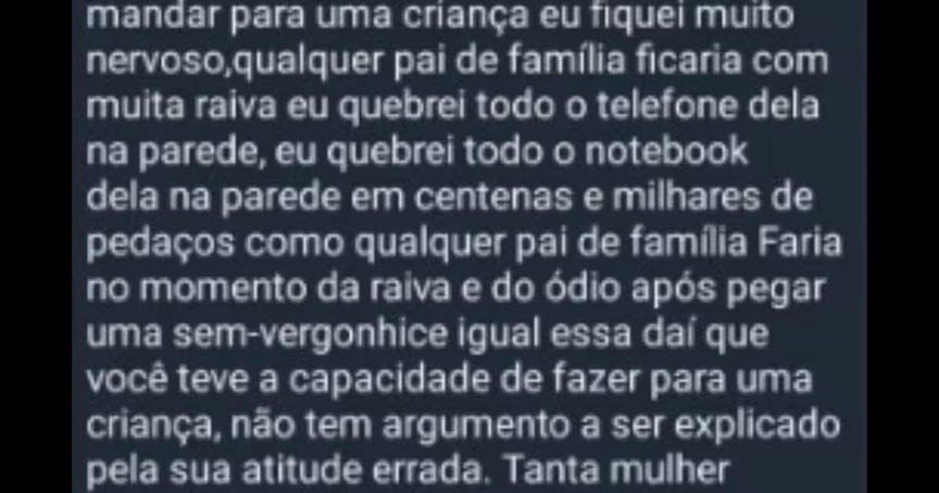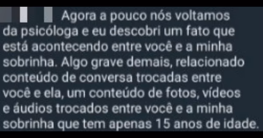 Na segunda-feira, 14, ele alega que foi surpreendido por mensagens de um homem que dizia ser tio de uma adolescente de 15 anos que tem problemas psicológicos.