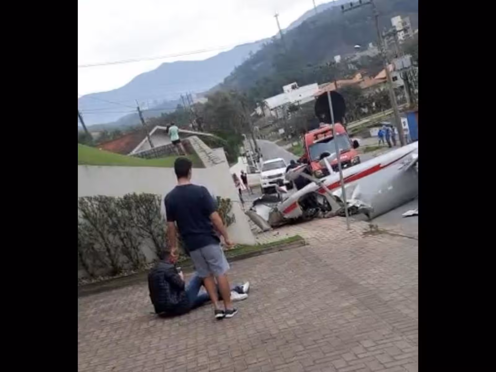 Segundo os bombeiros, os dois homens, de 35 e 33 anos, saíram sozinhos da aeronave, conscientes. O acidente aconteceu na rua José Julio Schumacher.