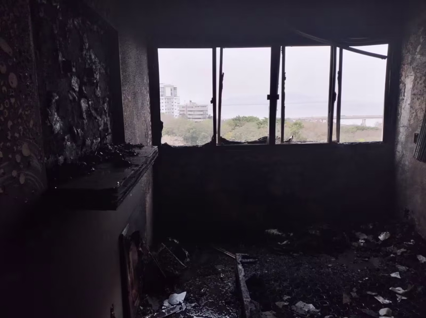 O apartamento fica no 11º andar do prédio e o fogo já estava em desenvolvimento, sendo possível avistar as chamas de longe, explica o Corpo de Bombeiros.